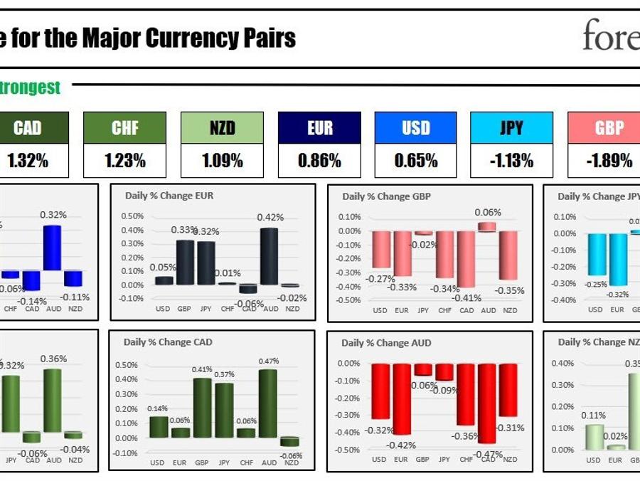 The CAD is the strongest and the AUD is the weakest as the North American session begins. The GBP is also weaker despite higher CPI data. PPI in the UK was lower. The GBP initially moved higher on the news but then reversed lower as traders focused on the potential central bank reaction to the elevated inflation data. The Canadian dollar is stronger ahead of retail sales which are expected to rise by 0.4% versus -1.4% last month.