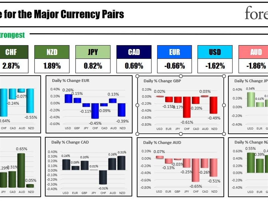 The CHF is the strongest and the GBP is the weakest as the NA session and the new trading week in North America begins. The USD is mostly lower with modest gains vs the GBP. The AUDUSD is unchanged. The USDCHF is the biggest mover as flows into the CHF (safety?) dominate the price action. Technically, the USDCHF is moving away from its near converges 100/200 hour MAs and looks to test the low from last week and the prior week near 0.8900 area (see chart below).